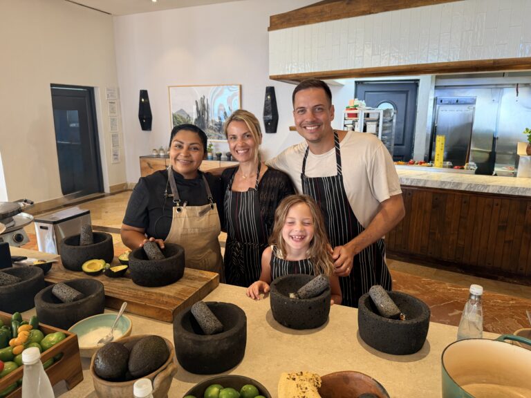 But one of the most memorable experiences was the cooking class at Talavera. We made guacamole, tortillas, salsa—the kind of hands-on experience that could have easily felt like a “resort activity,” but didn’t. It felt real, engaging, something the kids actually got into. Mila, who used to eat avocado all the time and then completely stopped, suddenly loved it again after making it herself. Which feels small, but also isn’t.