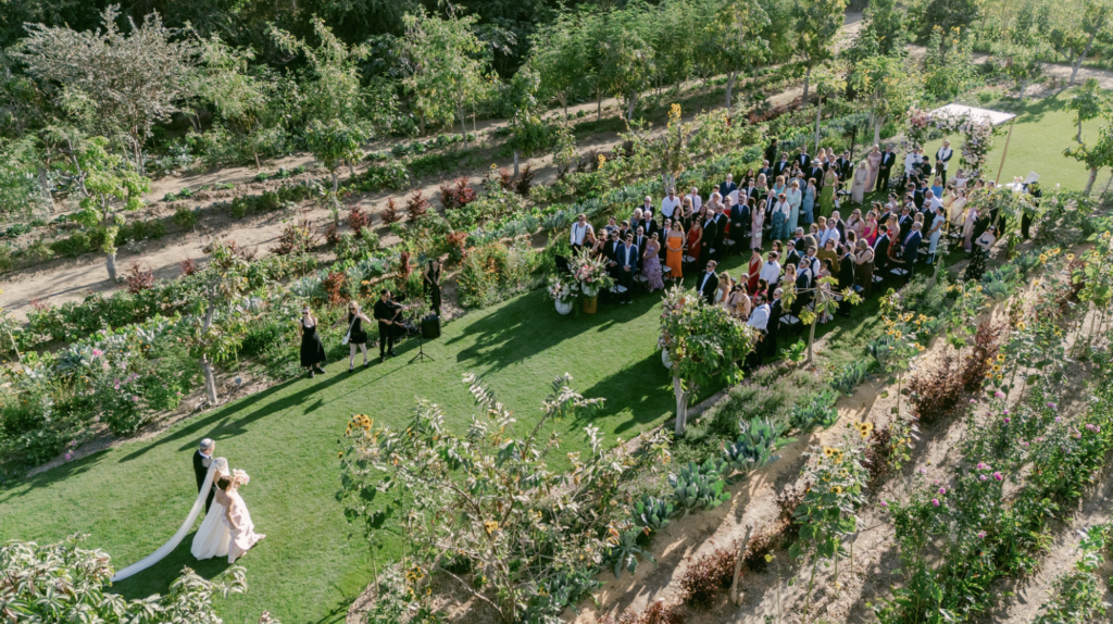Set on a 25-acre organic farm tucked into the foothills, Flora Farms doesn’t feel like a traditional venue. It feels like its own ecosystem. Lush, layered, alive in a way that’s hard to replicate. There are pathways lined with greenery, open-air spaces that feel both expansive and intimate, long wooden tables, soft lighting that comes alive as the sun goes down. It’s beautiful, but not in a sterile or overly styled way. It feels grounded. And that made the entire experience land differently. The property includes its own herb gardens, bakery, and on-site culinary program, which means everything (from cocktails to dinner) is sourced directly from the land you’re standing on. How cool is that?