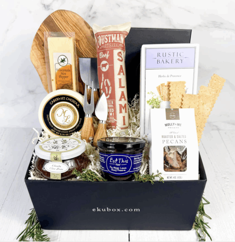 Thoughtfully curated and beautifully packaged, it includes artisan salami, small-batch jams, crackers, olives, and all the savory extras that turn an ordinary night into an occasion. Everything arrives neatly arranged in a keepsake box that’s as stunning as what’s inside—because presentation counts, even if it’s just a Tuesday night on the couch. It’s generous, elegant, and easy—the way gifting (and grazing) should be.